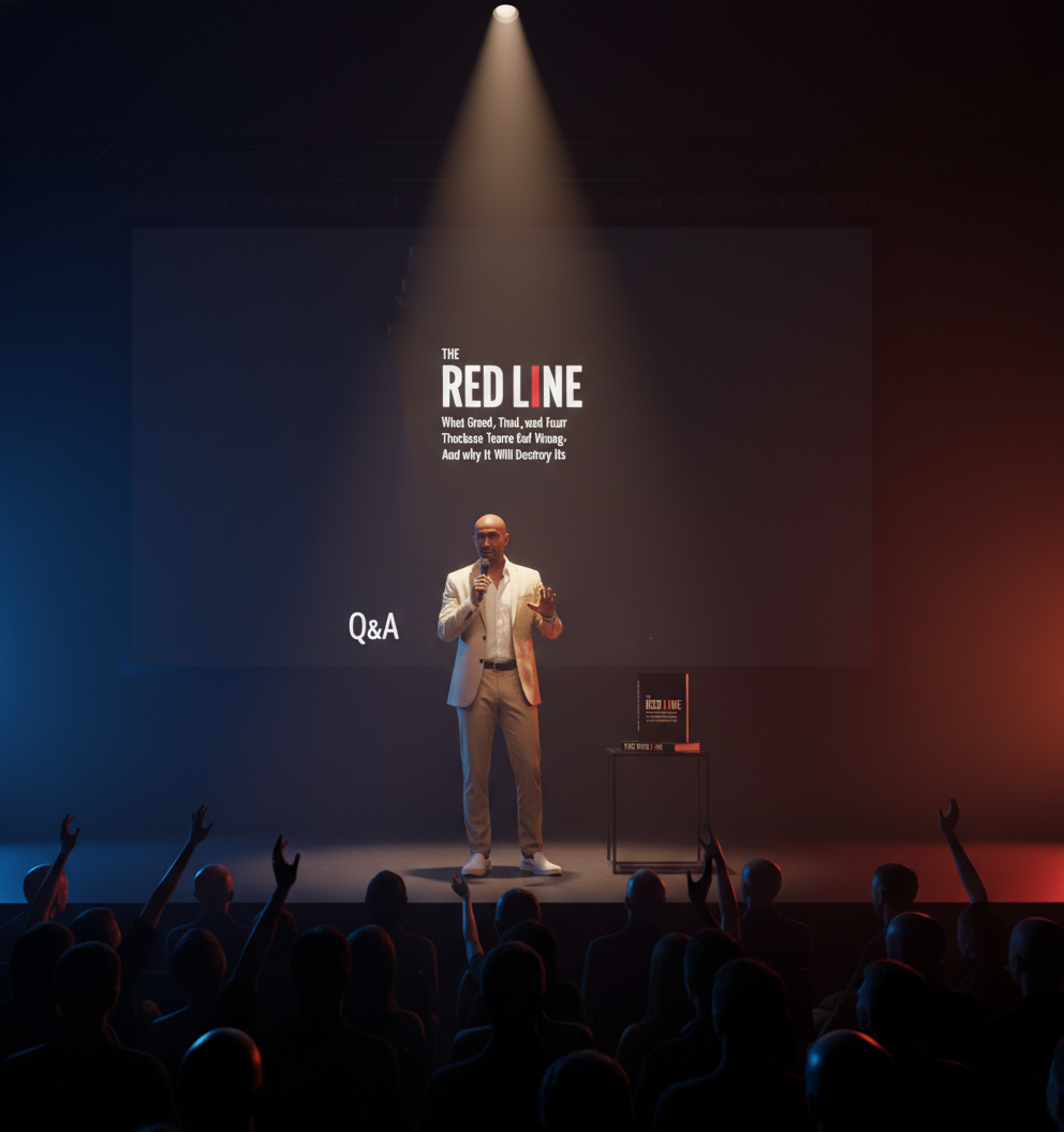 Understanding the need for versatility in today's digital landscape, I simultaneously developed a second concept, ensuring the core message remained potent even without the tactile elements. For the digital cover, the striking visual impact of the red line was maintained by transforming the "I" in "LINE" into a vibrant red stroke. This subtle yet effective shift retains the central motif, making it instantly recognizable and impactful across all platforms, from e-readers to online thumbnails.